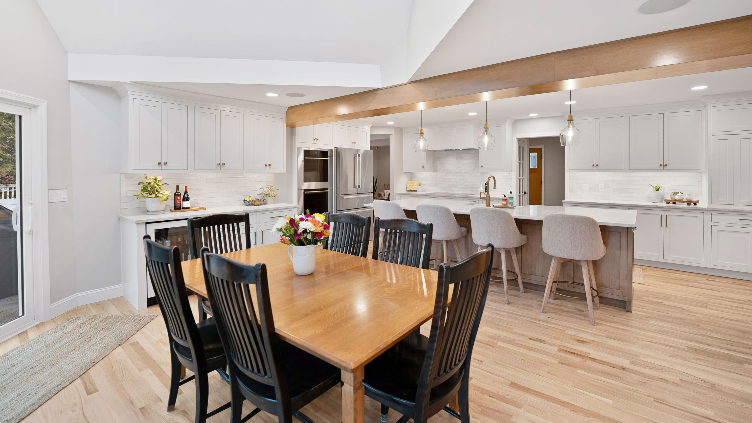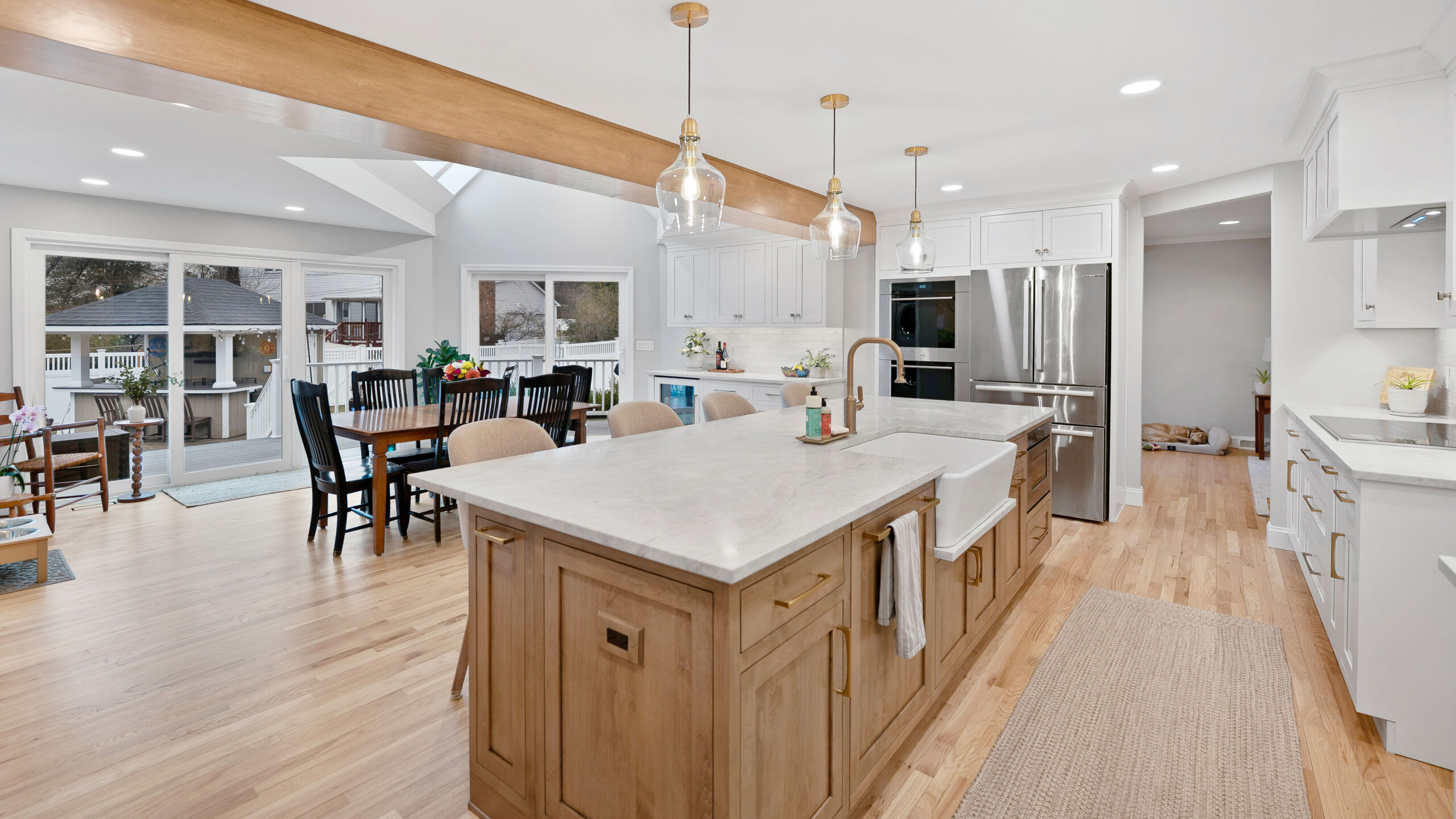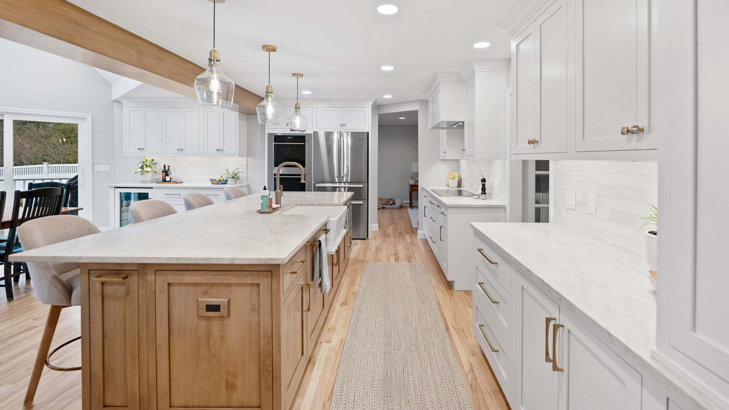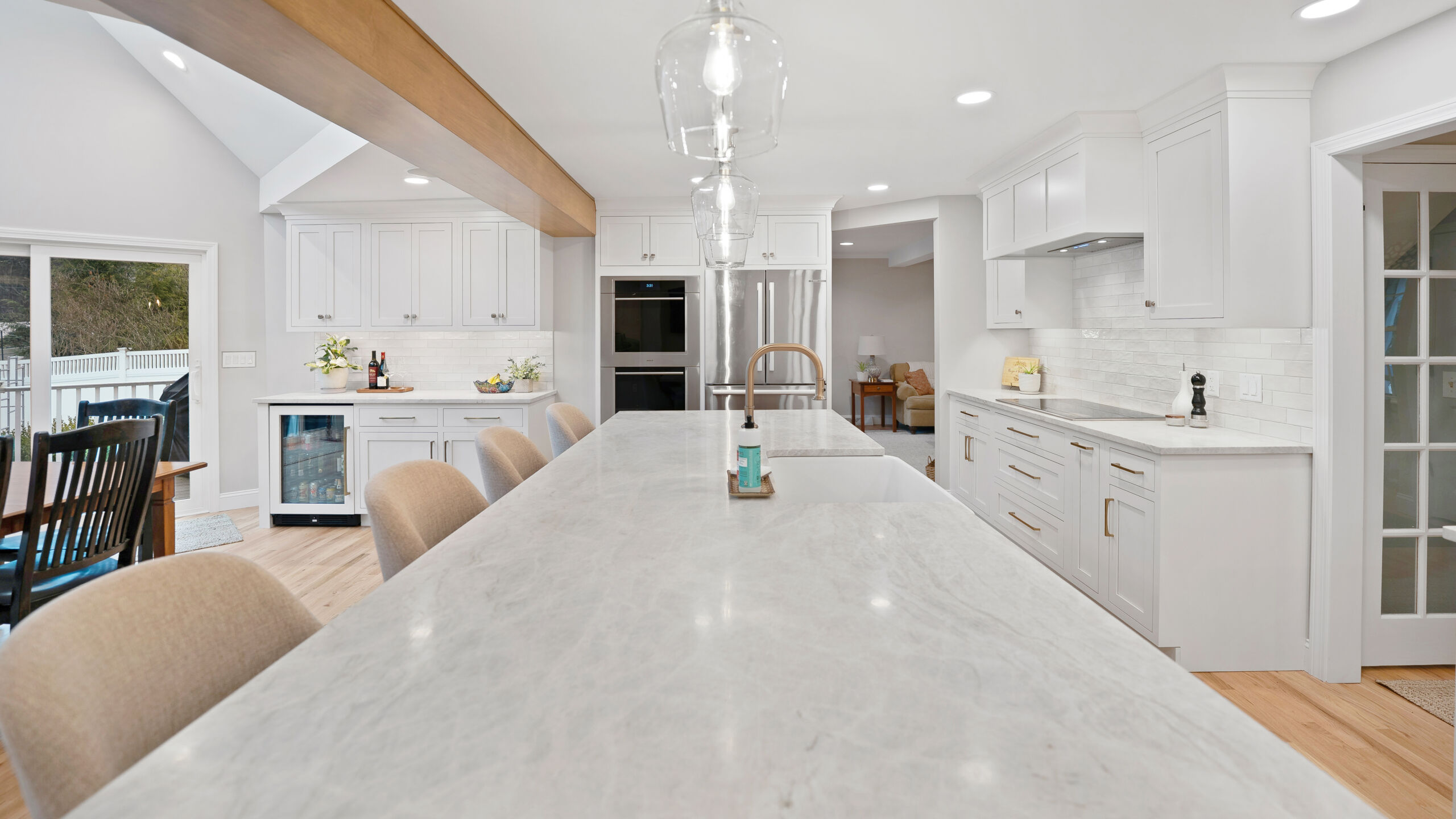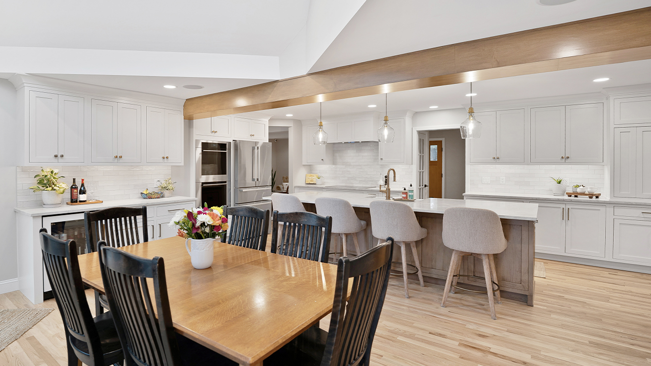 These homeowners wanted to remove the limitations in their home’s current layout that made it feel non-functional. Most notably, they had a large structural post in the center of their kitchen, disrupting the potential flow that the space could have. Removing that post was the defining moment in the project. Once eliminated and replaced with a stunning 18+ ft beam, the entire kitchen opened up, creating a brighter, more cohesive layout.