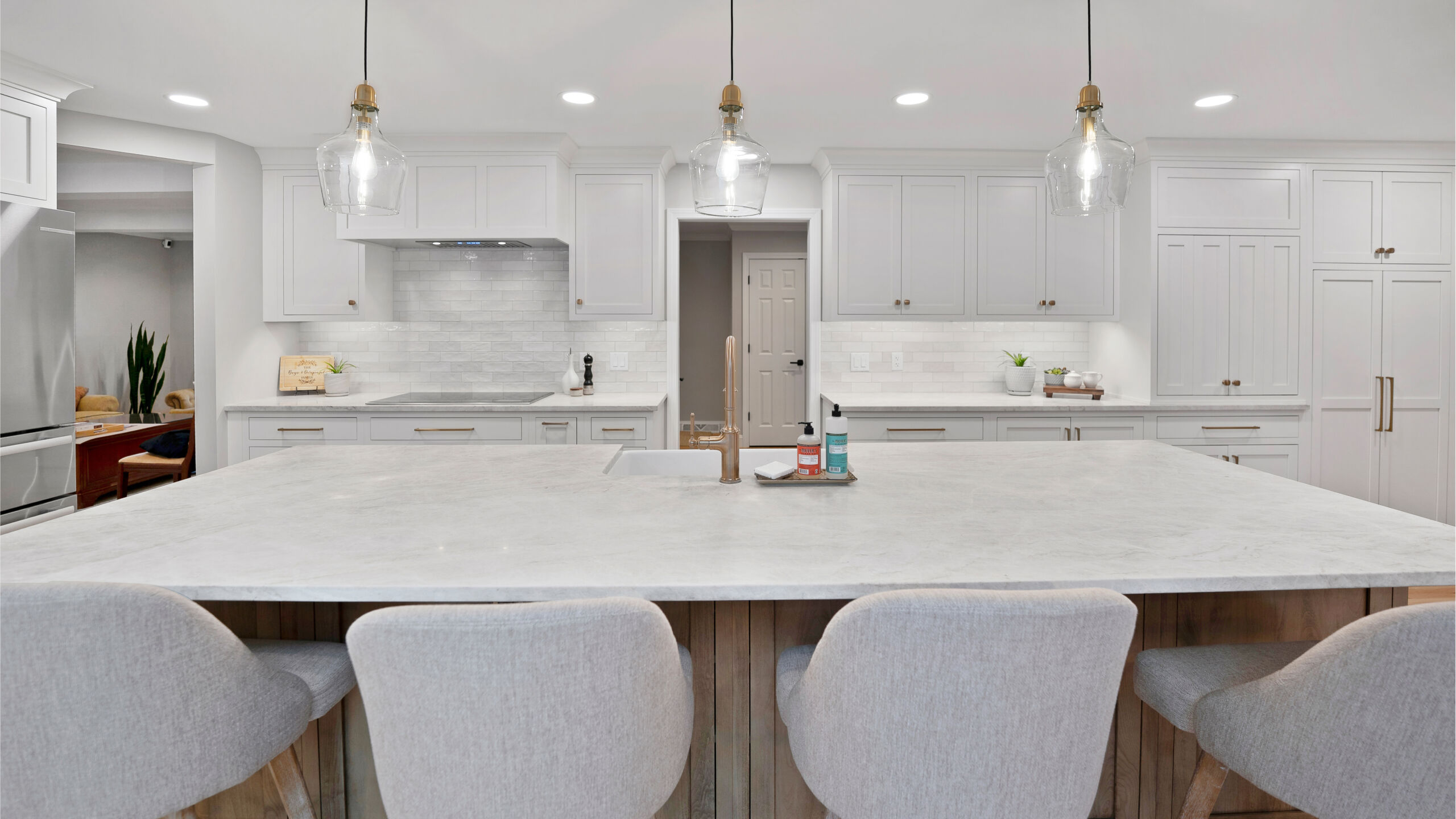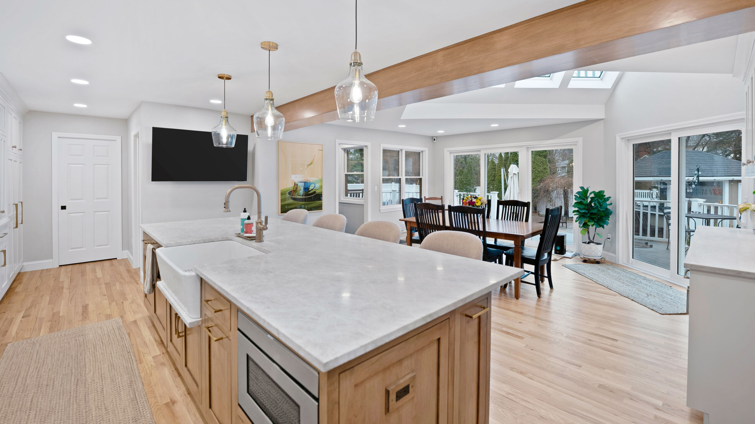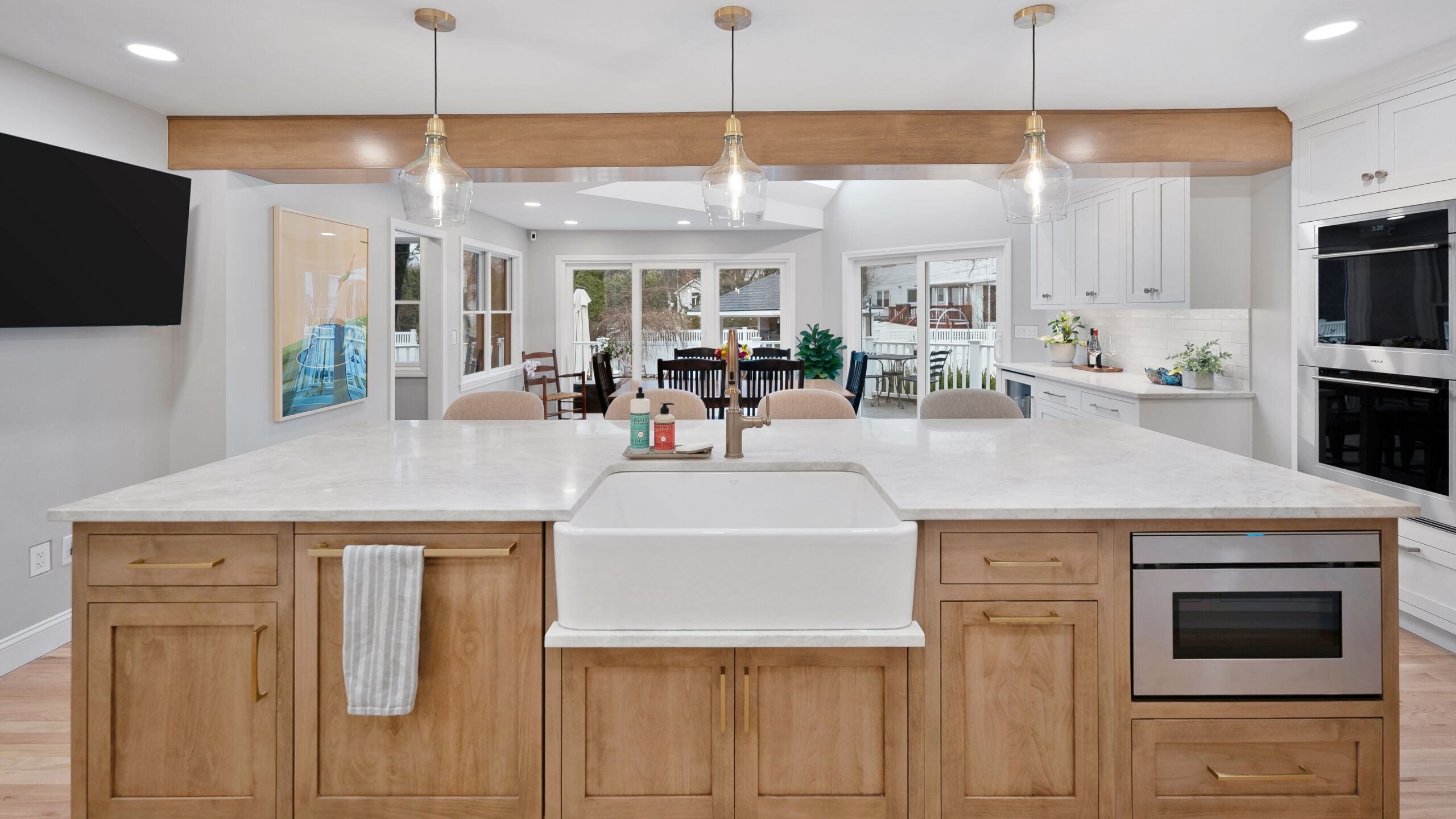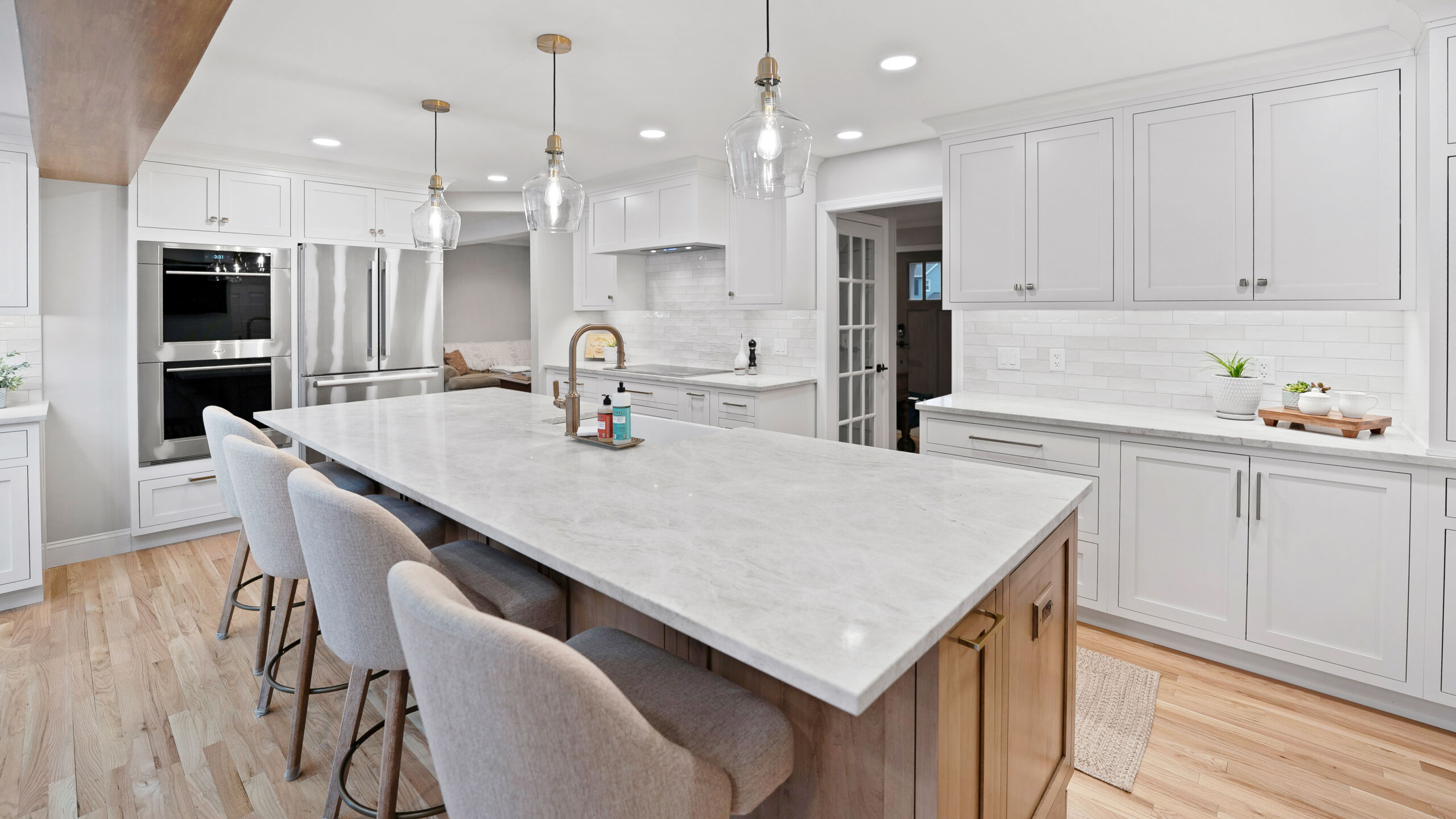 These homeowners wanted to remove the limitations in their home’s current layout that made it feel non-functional. Most notably, they had a large structural post in the center of their kitchen, disrupting the potential flow that the space could have. Removing that post was the defining moment in the project. Once eliminated and replaced with a stunning 18+ ft beam, the entire kitchen opened up, creating a brighter, more cohesive layout.