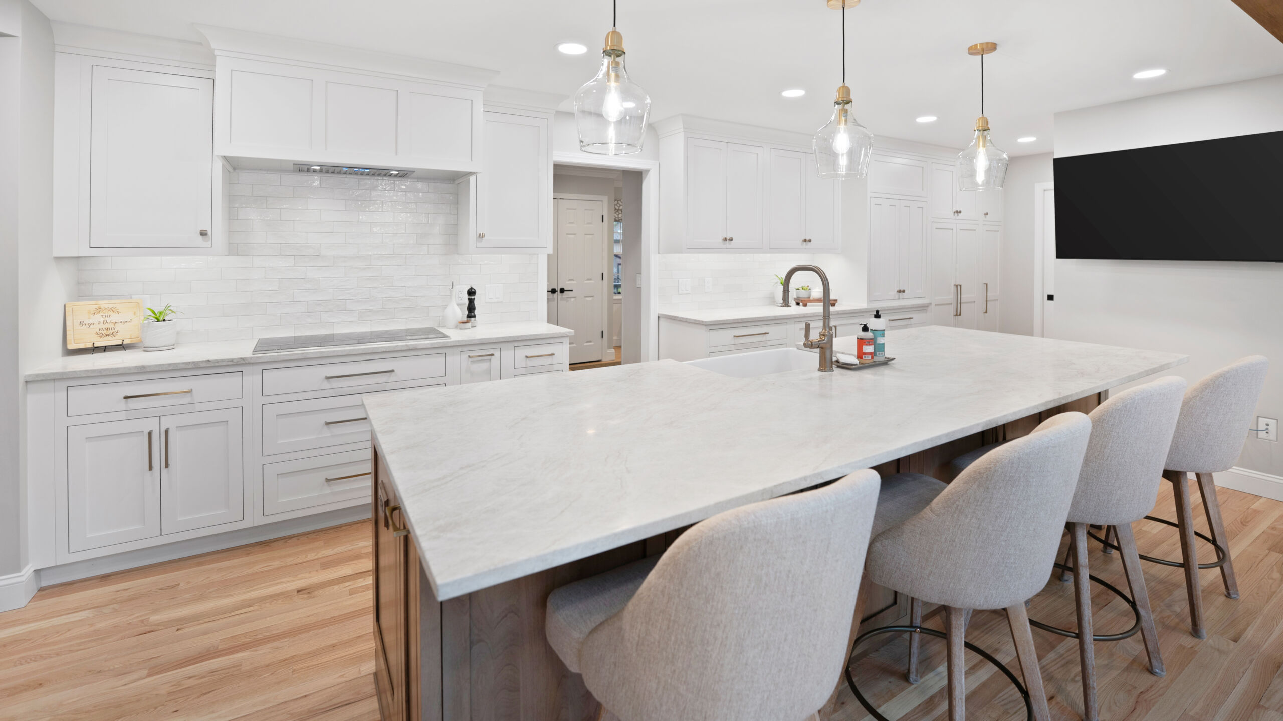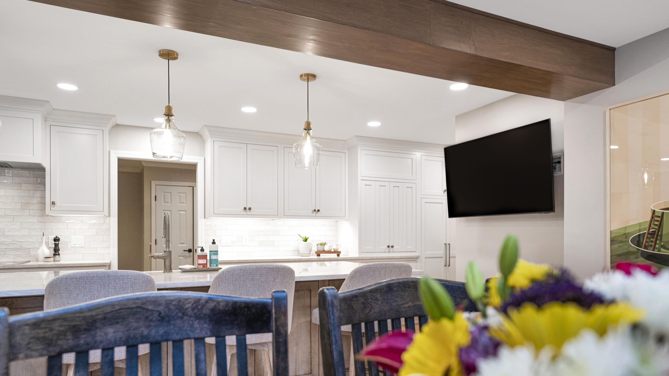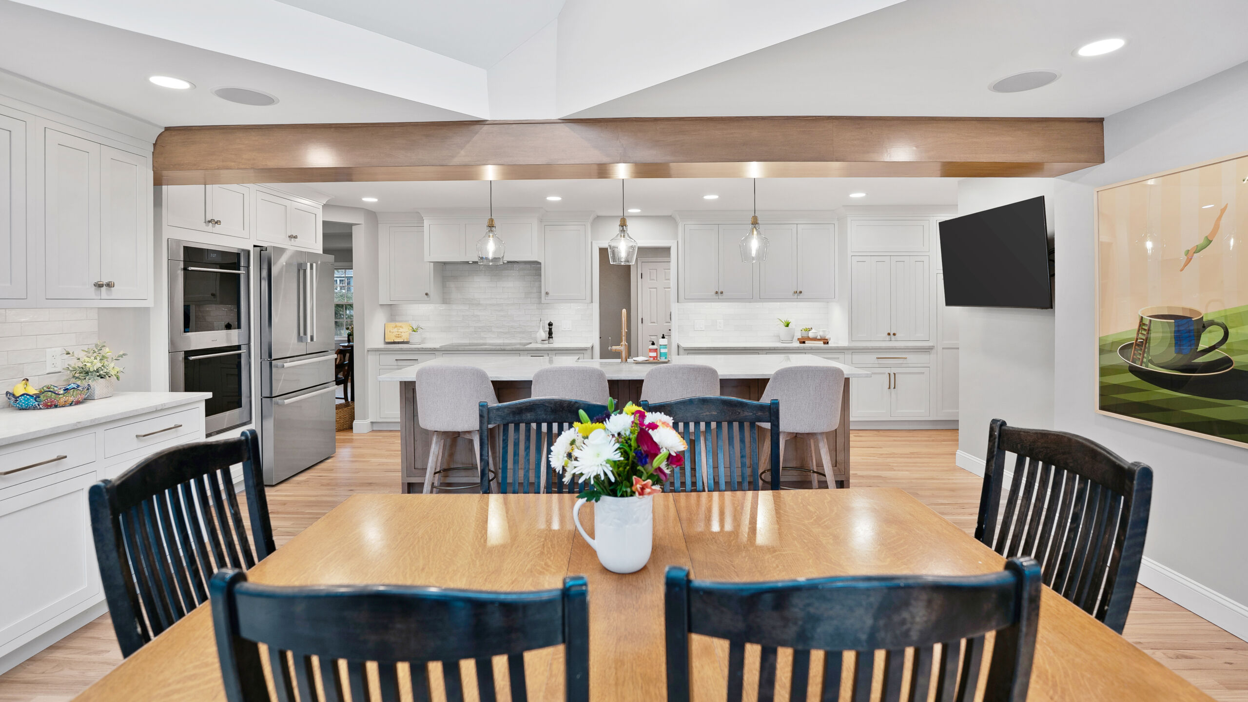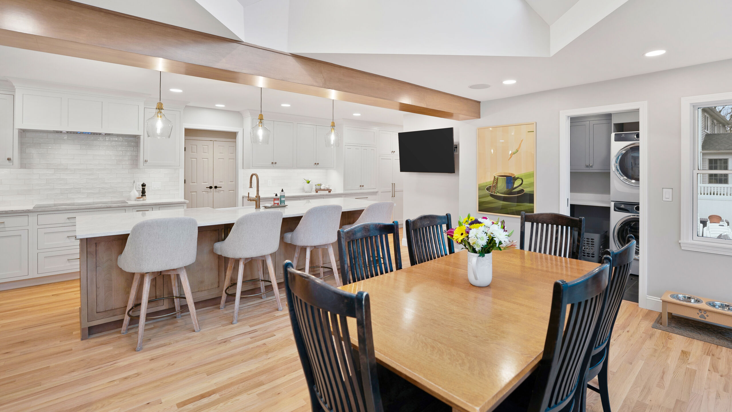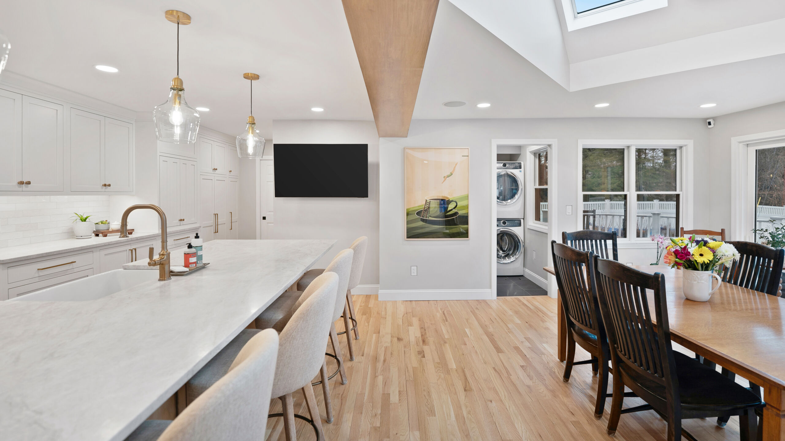 These homeowners wanted to remove the limitations in their home’s current layout that made it feel non-functional. Most notably, they had a large structural post in the center of their kitchen, disrupting the potential flow that the space could have. Removing that post was the defining moment in the project. Once eliminated and replaced with a stunning 18+ ft beam, the entire kitchen opened up, creating a brighter, more cohesive layout.