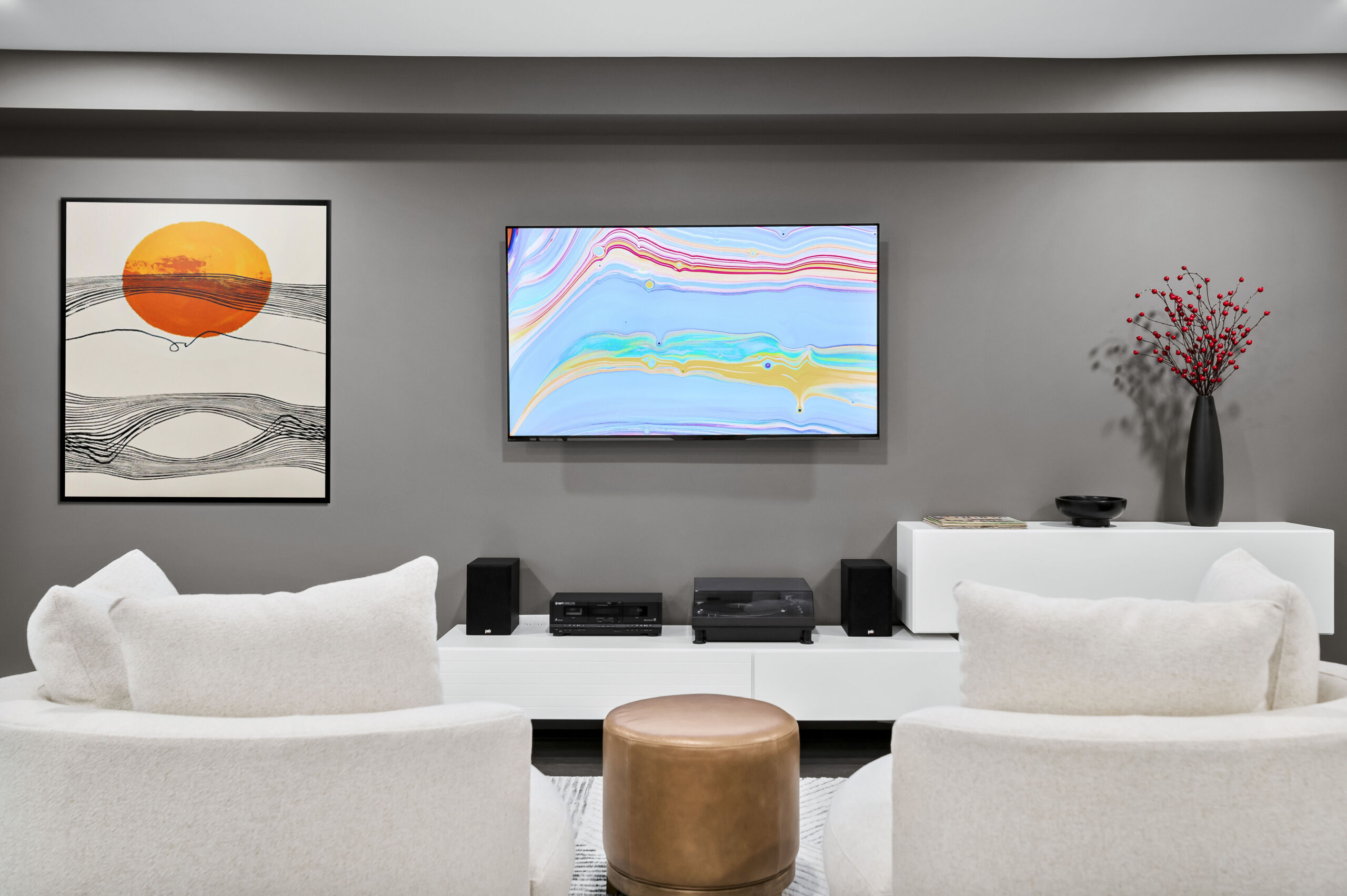 To maximize headroom in the basement, soffits were created only where necessary to cover the utilities. And to blend the soffits in with the rest of the space, they were painted with colors matching the rest of the walls, adding a touch of sophistication.