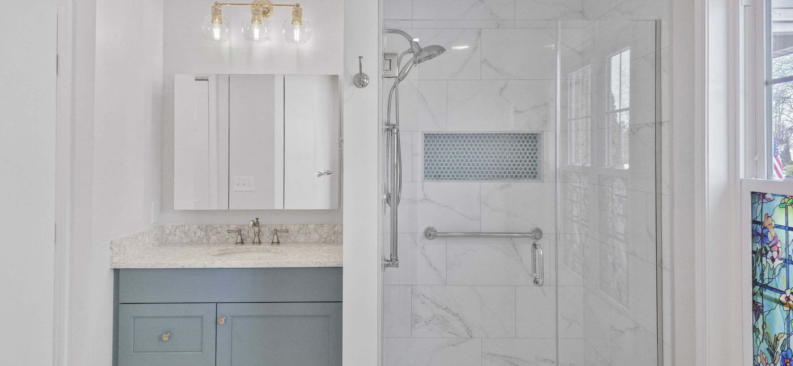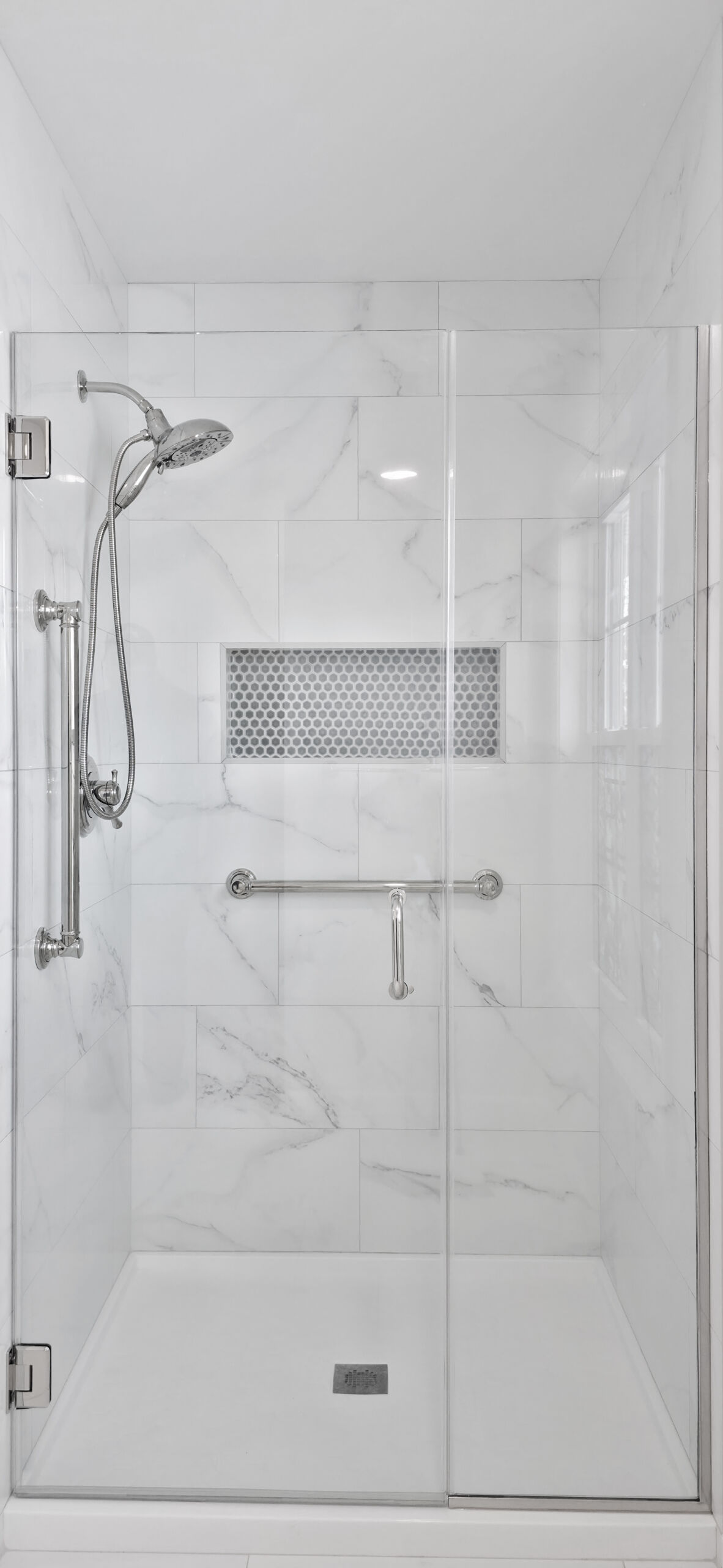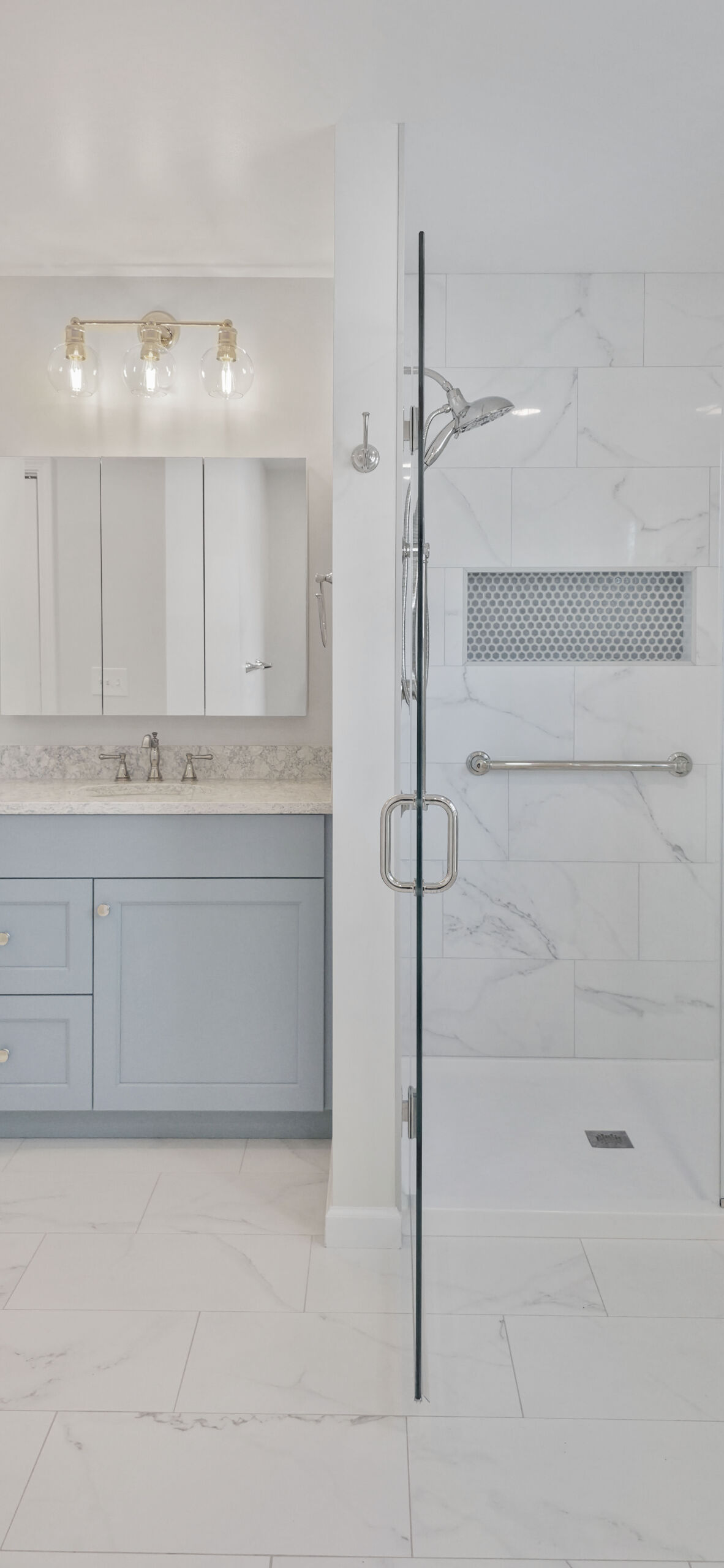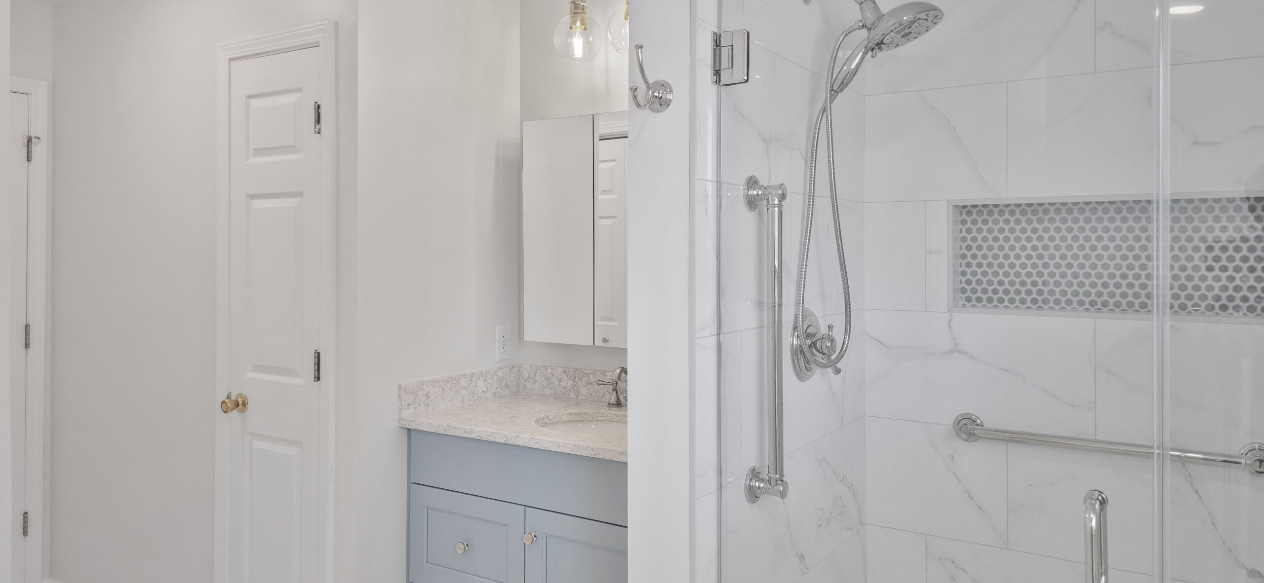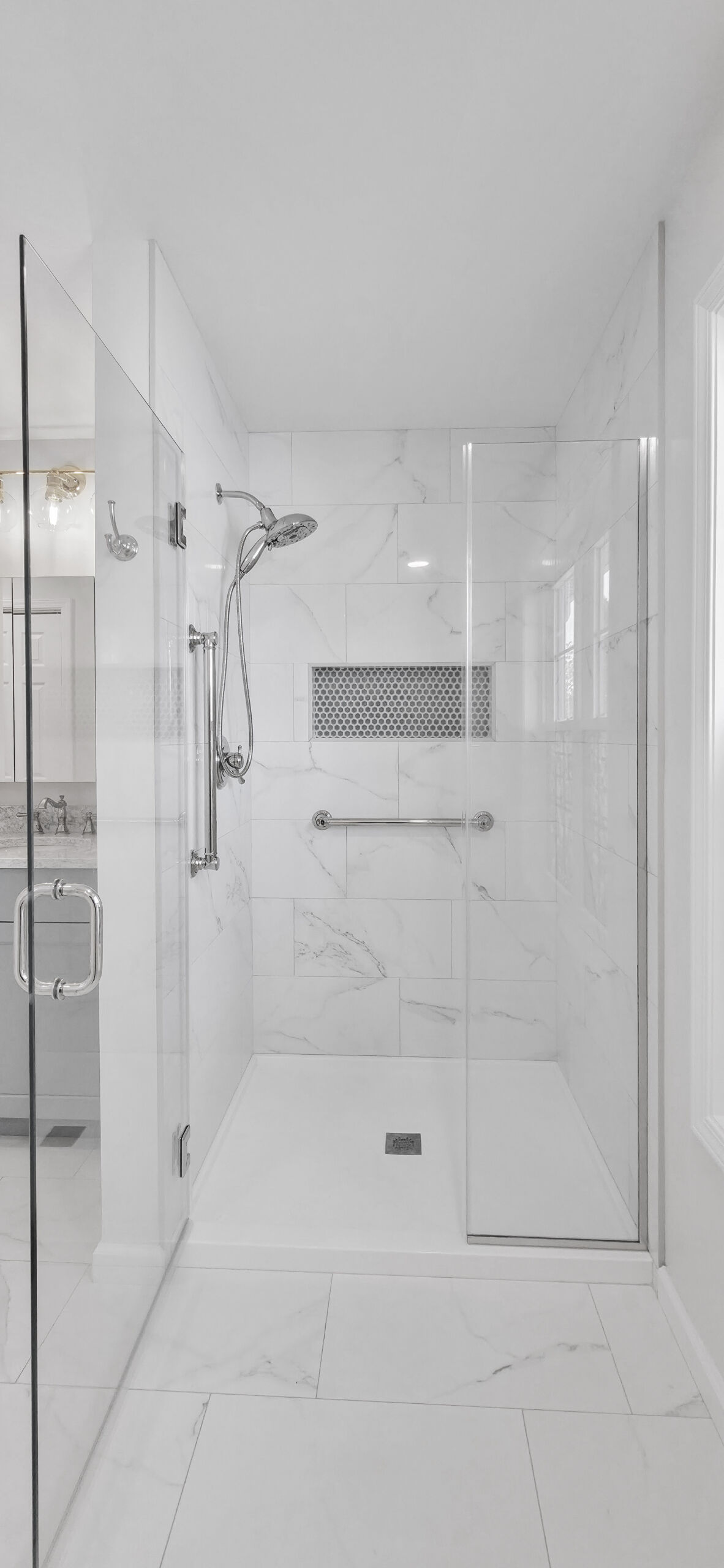 This primary bathroom remodel was thoughtfully designed to support long-term comfort and accessibility while maintaining a clean aesthetic. As the homeowners planned for the future, their goal was to create a space that felt more open and easier to navigate.