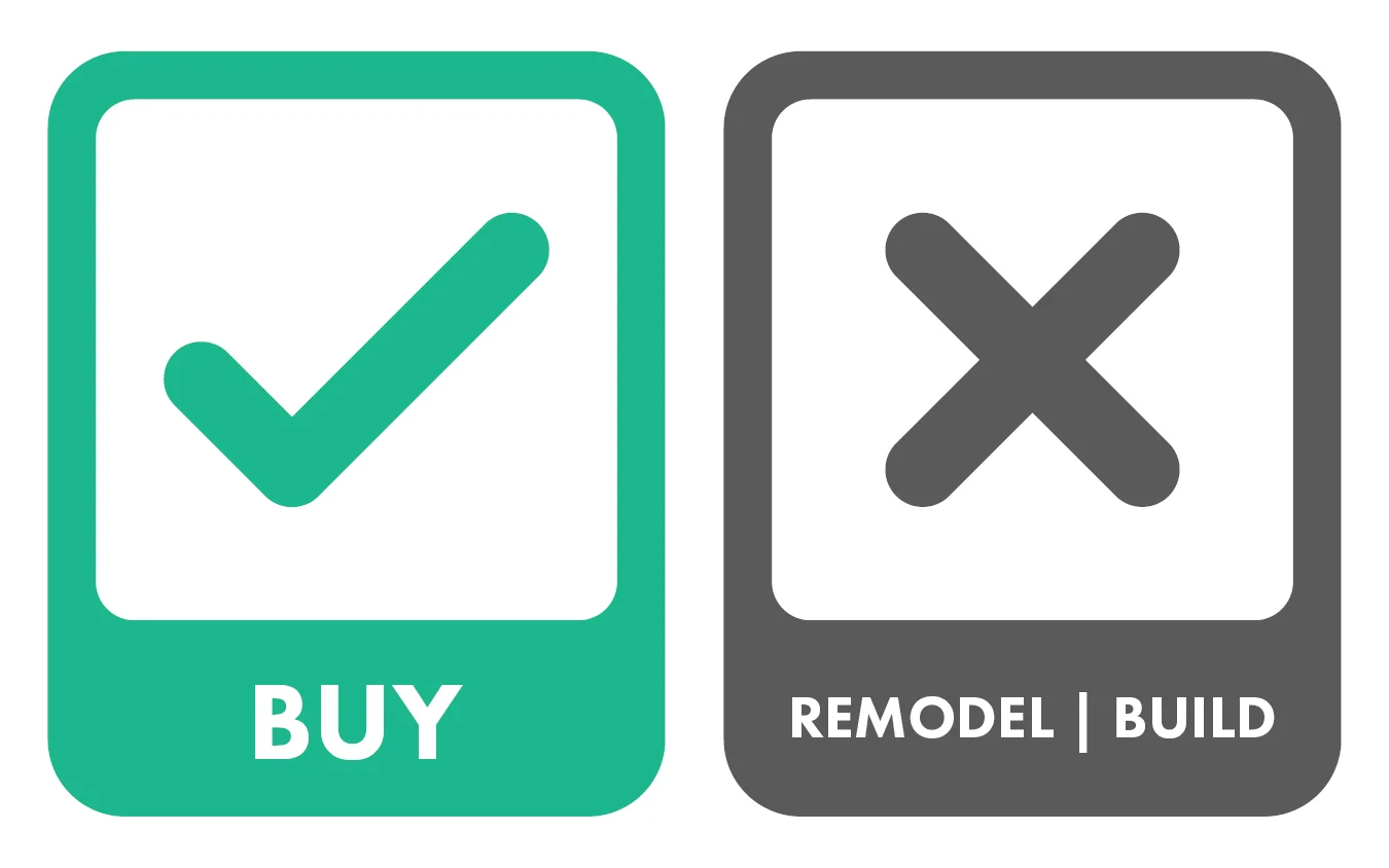 There’s no universal answer to remodeling, building, or buying a home, but here’s a chart and some focused questions that will give you a quick, direct answer. Keep reading if you want to get into more nuanced reasons.