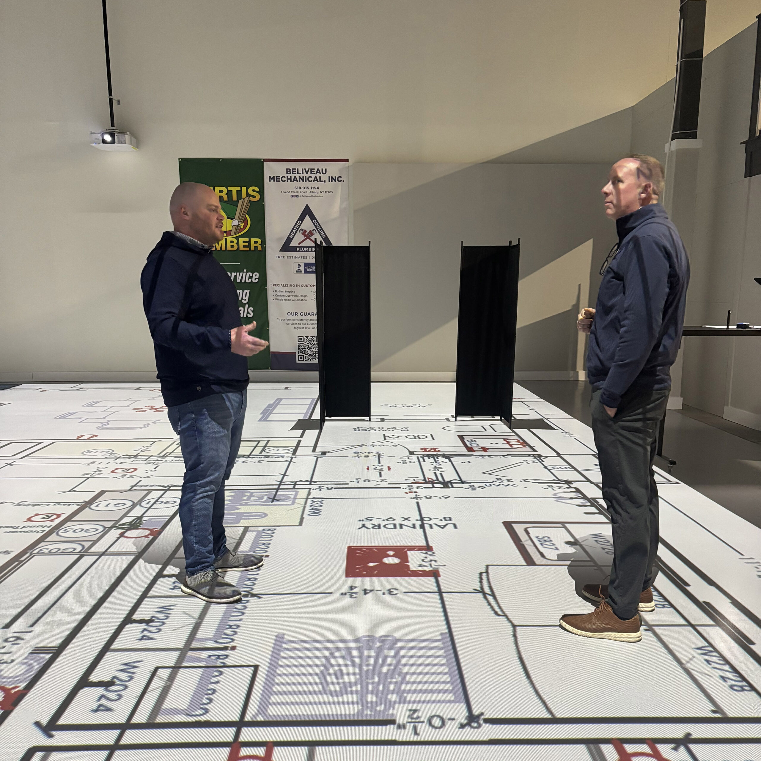 Using advanced projection technology, Walk Thru NY takes your floor plans and displays them at true, life-size scale on the floor and walls, so you can experience the layout, spacing, and flow of your future space in real time. This immersive approach helps eliminate guesswork, improve decision-making, and ensure everyone involved is fully aligned before building starts.